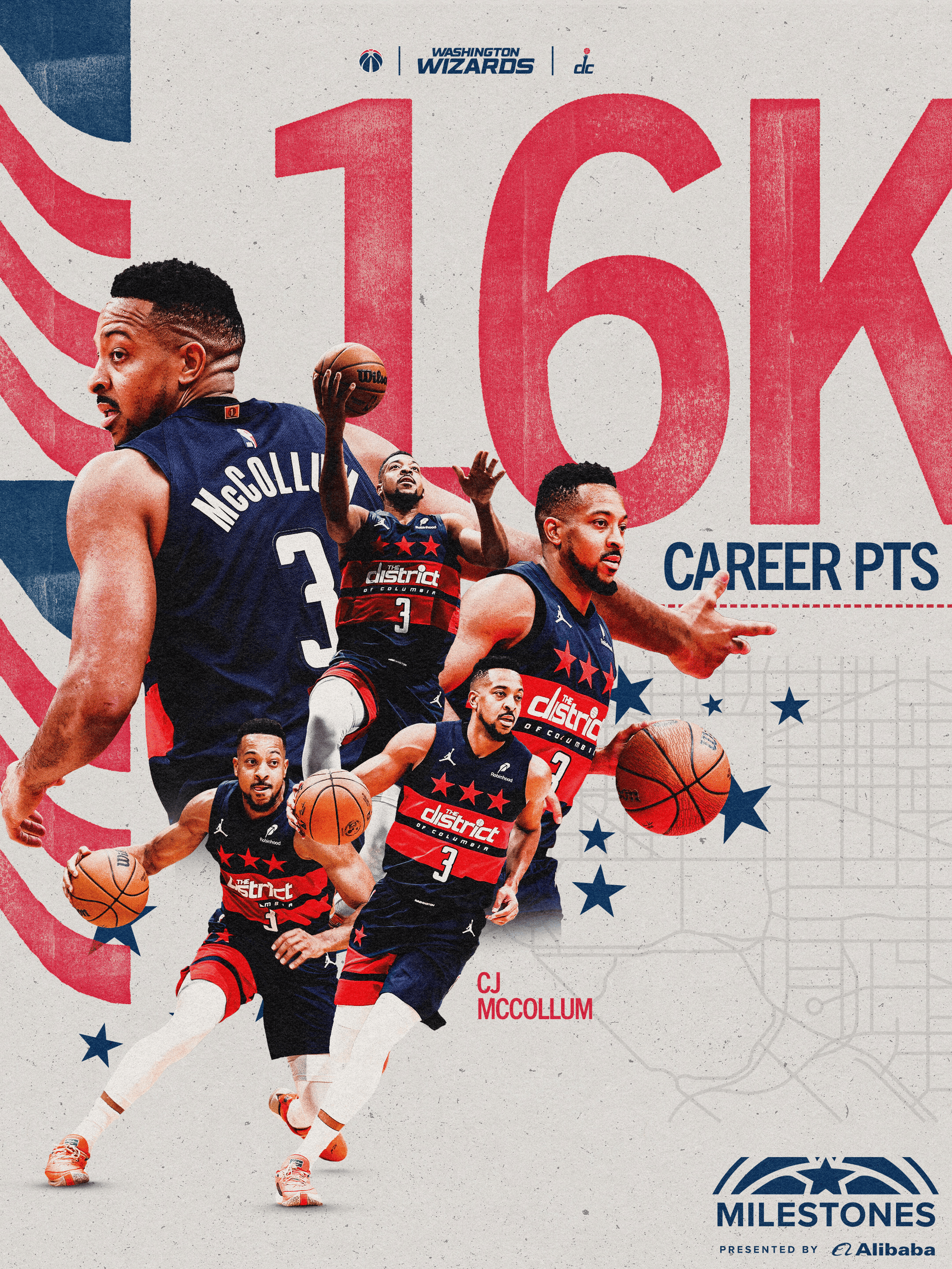 奇才官方分享海報(bào):祝賀CJ-麥科勒姆進(jìn)入16000分俱樂部。享海