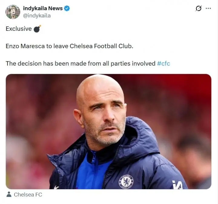 轉(zhuǎn)會記者“綠帽哥”indykaila爆料獨家消息,稱切爾西主帥馬雷斯卡已經(jīng)確認下課。家馬